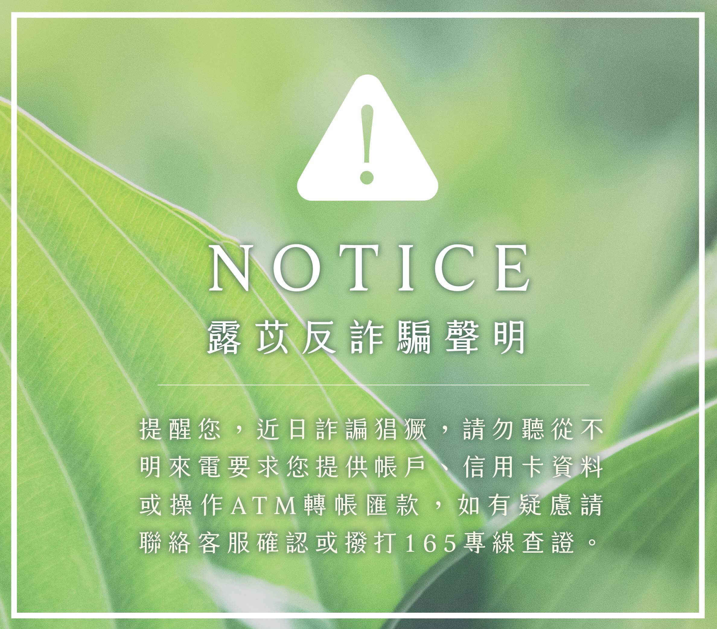 上述若向您要基本資料或銀行帳戶資訊 皆非本公司行為!